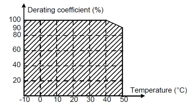 | بالای ۵۰°C: غیرمجاز! | ۱٪ به ازای هر ۱°C | ۱۰- تا ۵۰+°C | INVT GDها |